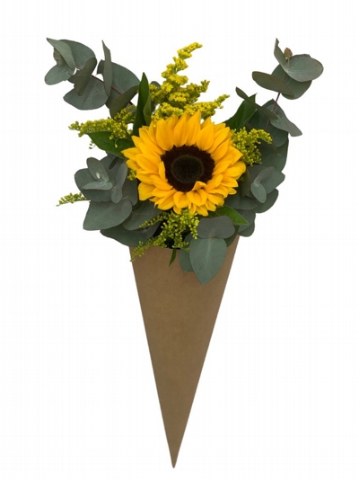 Composto por: 01 cone de papel, 01 girassol com folhagens variadas