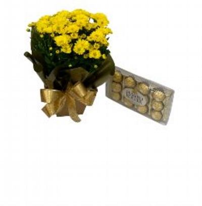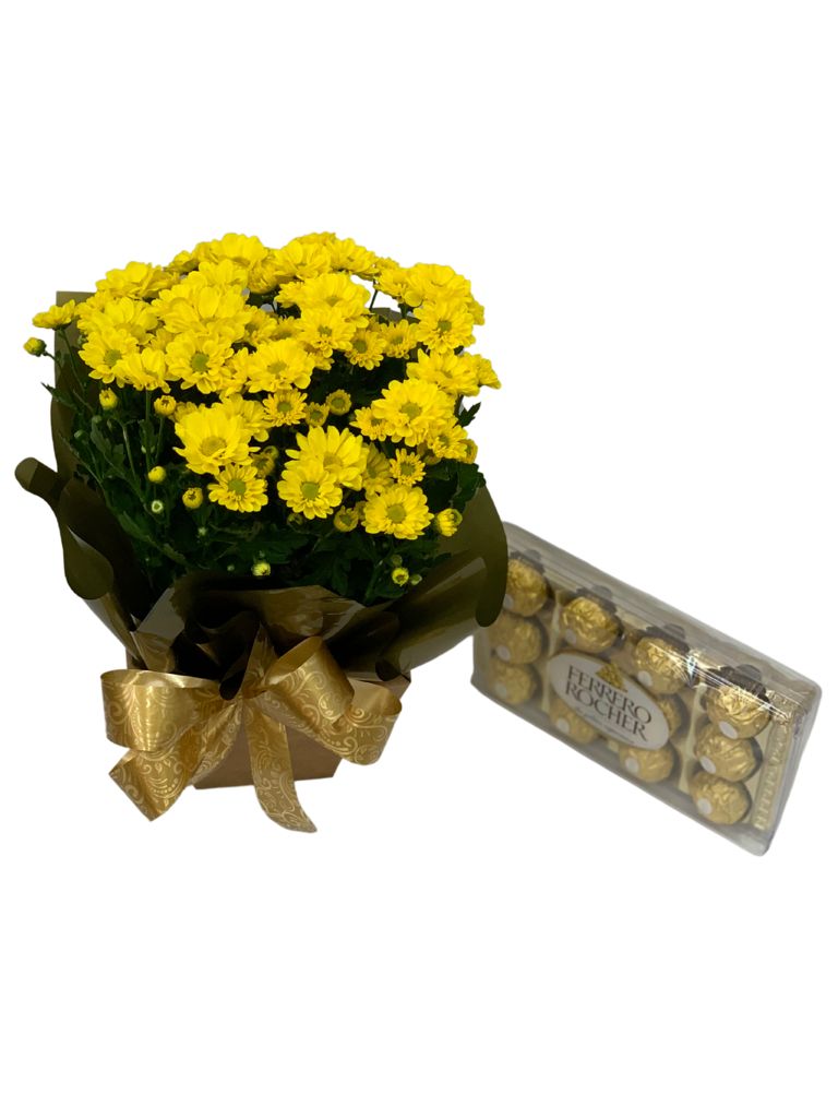 Vaso de Margarida Amarela e Ferrerro Rocher