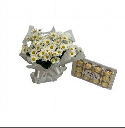 Vaso de Margarida Branca e Ferrerro Rocher